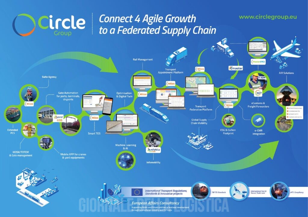 Con un mix collaudato di competenze, tecnologie avanzate e una profonda conoscenza del settore, Circle Group si conferma un partner strategico per guidare le imprese della logistica e dei trasporti nella transizione digitale, rendendo concreti i benefici offerti dal PNRR e proiettando il sistema logistico italiano verso un futuro più integrato, sostenibile e competitivo.