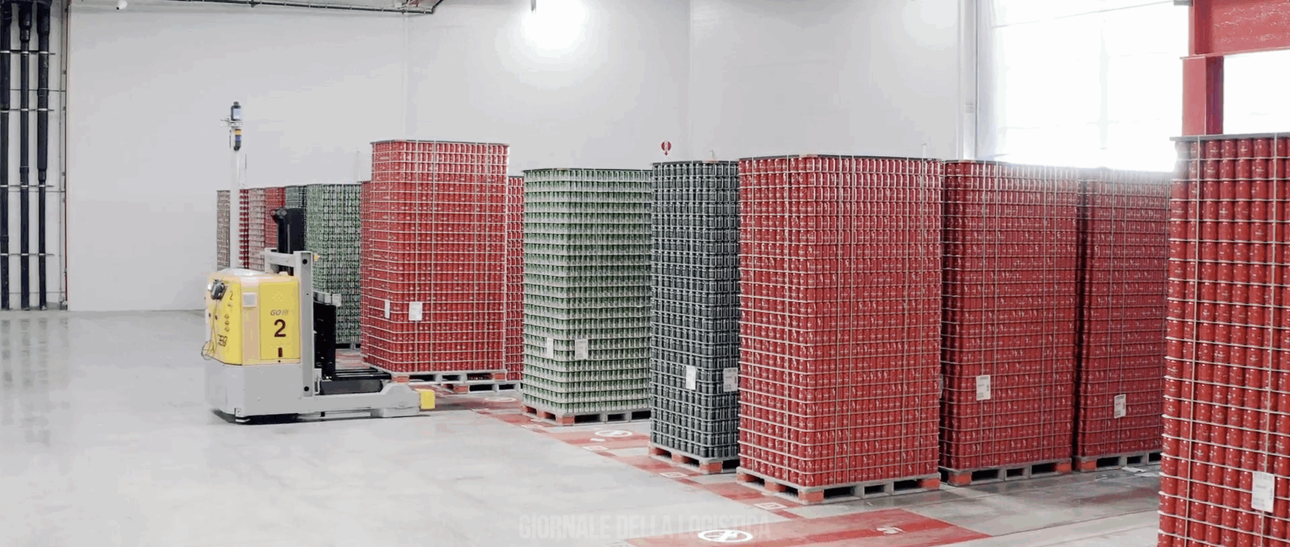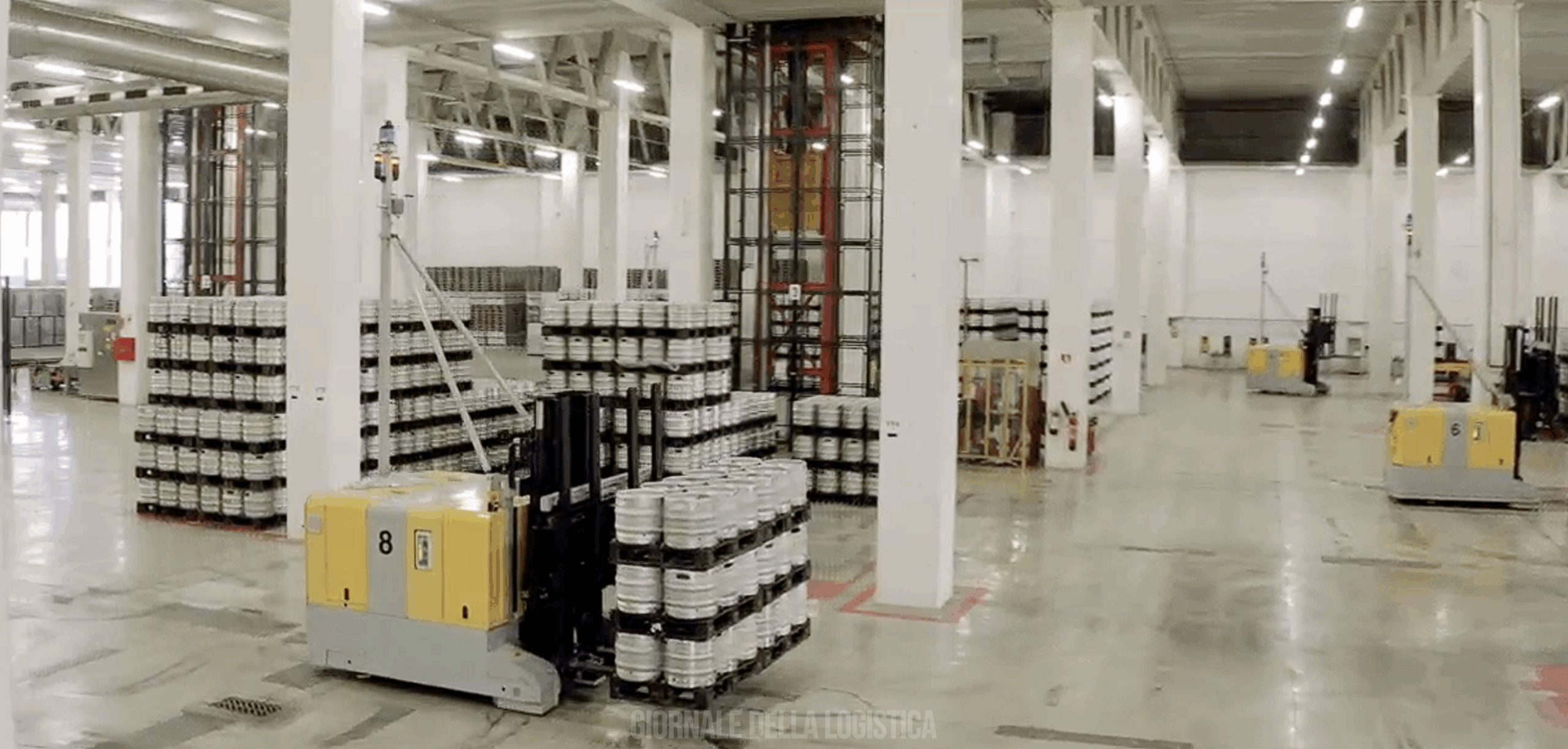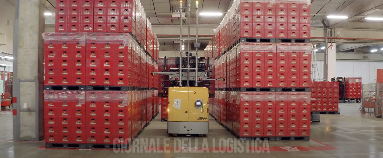 Il progetto si concretizza con l’implementazione di 20 veicoli automatici a guida laser (LGV) per la movimentazione di lattine e barili e la loro organizzazione in sistemi di stoccaggio automatici Block Storage.